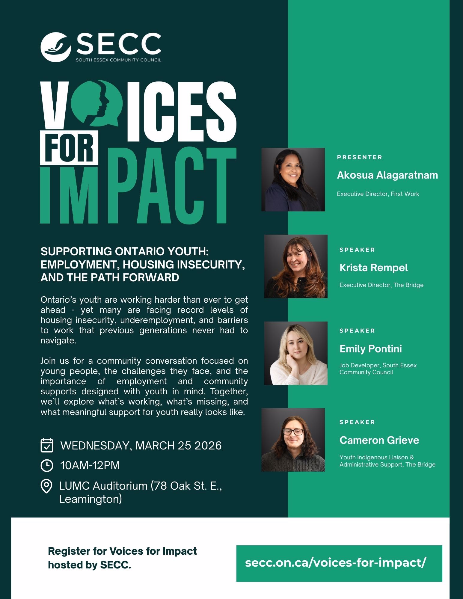 Voices for Impact, a community discussion exploring the realities young people face today and the role employment and community supports play. We’ll examine what’s working, what’s missing, and how we can better support youth in our region.
